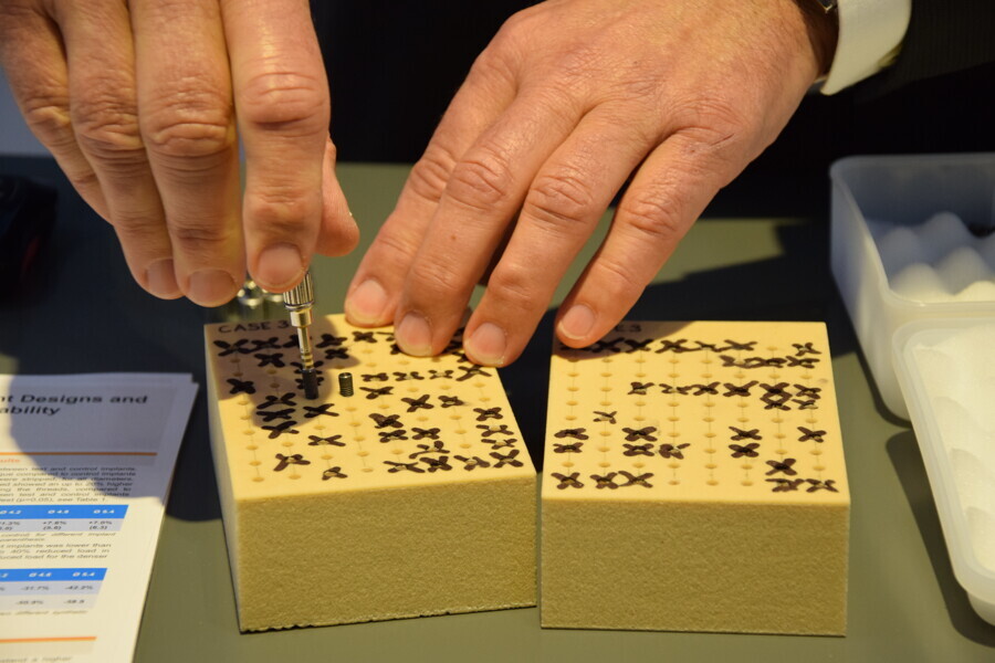 A Dentsply Sirona representative demonstrating the Astra Tech Implant System EV. (Photograph: Franziska Beier, DTI)