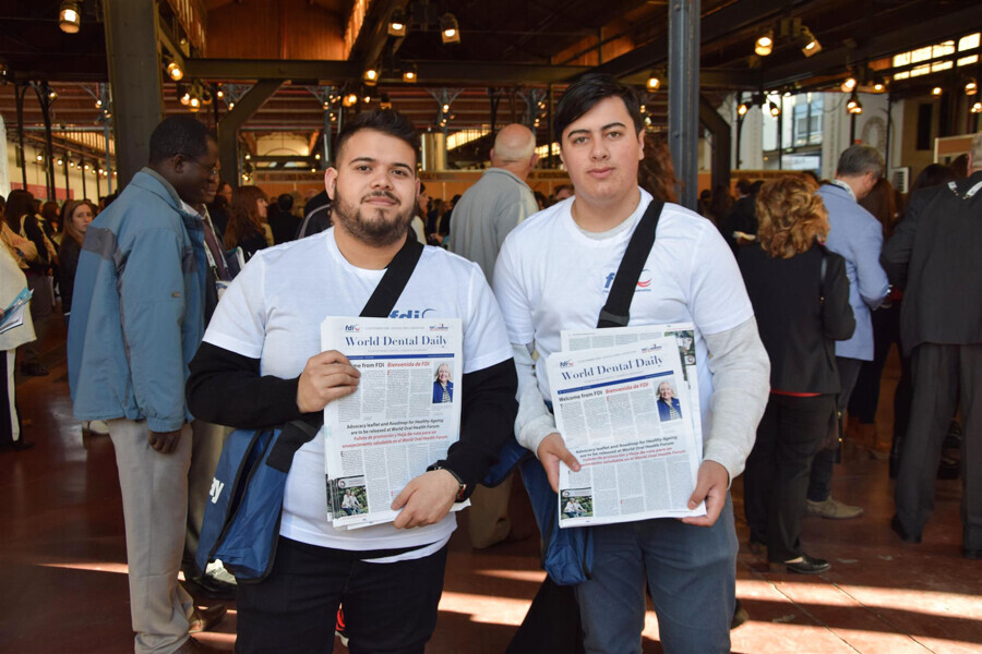 The World Dental Daily congress newspapers can be collected from the registration area and the Dental Tribune Intentional booth #1D07. (Photograph: Monique Mehler, Dental Tribune International)
