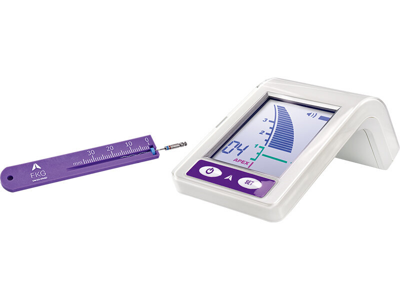 The apex locator S-Apex combines design and precision in a compact format. The S-Apex takes up little place, fits every hand and can be stored on any instrument tray.