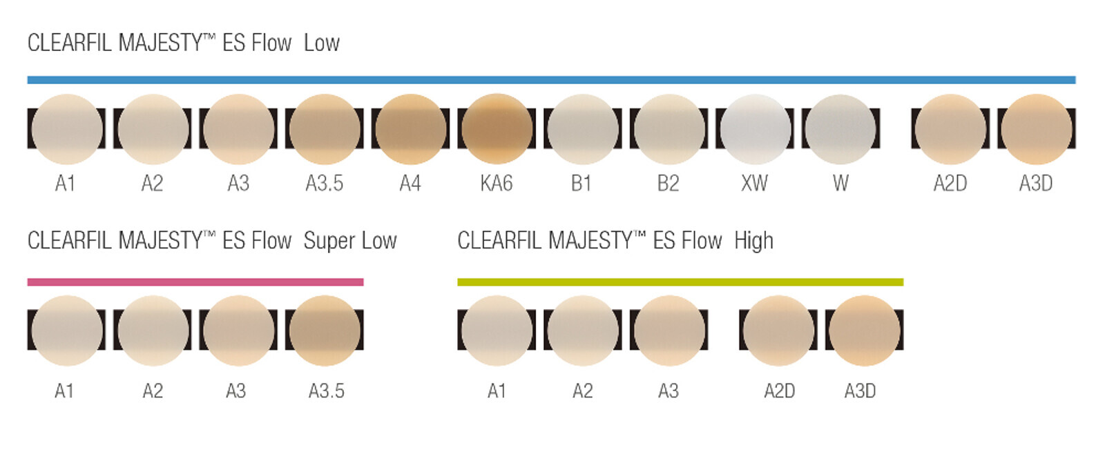 Fig. 1: CLEARFIL MAJESTY ES Flow in its three different levels of flowability.
