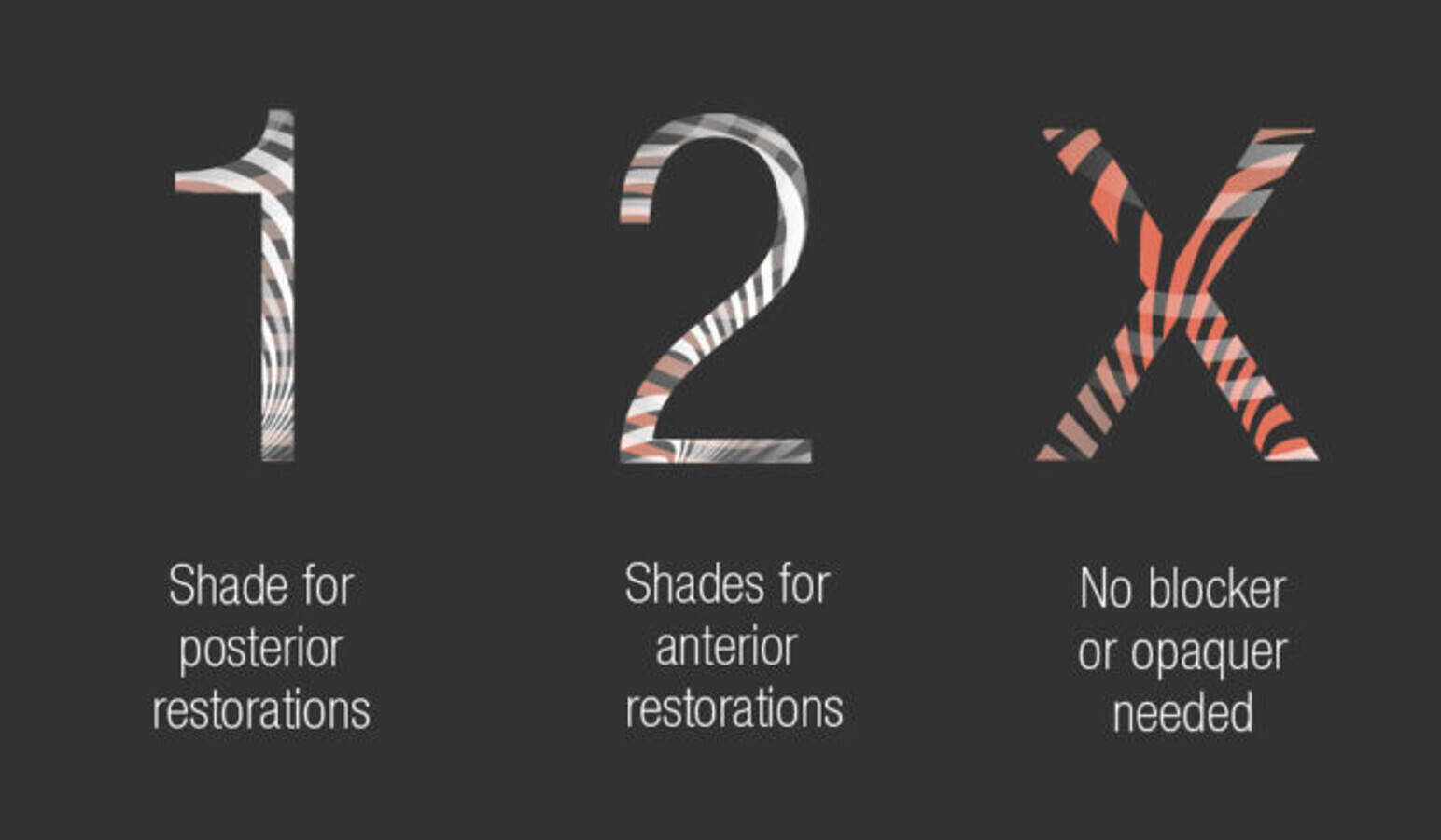Another way in which ‘universal’ can be considered is in relation to shade. In this case, the term is used to describe a restorative composite system that exists in fewer shades, one that can adapt to the tooth structure independent of the colour of the tooth. A major benefit of this type of composites is that it offers a simplified workflow.