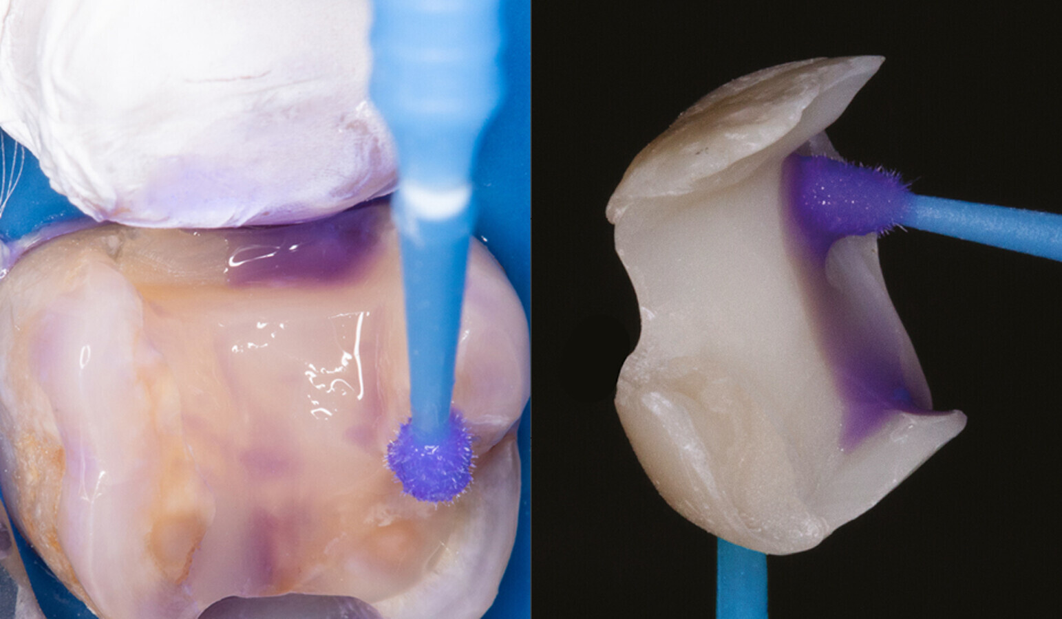 When proteins present in blood and saliva are deposited on the bonding surfaces of teeth or dental restorations, the bonding performance of dental adhesives and self-adhesive resin cements is compromised. As it is impossible to keep these surfaces free of oral fluids at the try-in stage, effective cleaning strategies are necessary. In tests comparing different methods and cleaning agents, sandblasting and the use of KATANA Cleaner have been shown to be highly successful in removing the proteins from the bonding surfaces.1