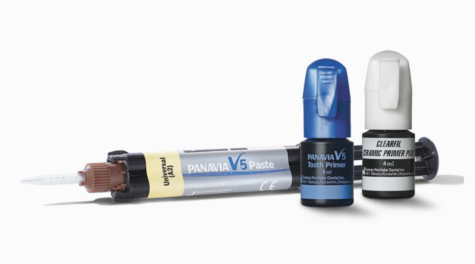 For those who place importance on achieving the highest possible bond strength and aesthetics, PANAVIA V5 is the solution. The reliable dual-cure cementation system, consisting of a tooth primer, cement paste and a ceramic primer, produces the highest bond strength and aesthetics of the PANAVIA cement range.