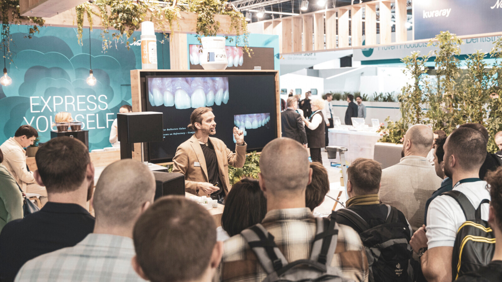 Alexander Aronin lecturing at the International Dental Show 2023 in Cologne in Germany. (Image: Dennis Debiase/Kuraray Noritake Dental)