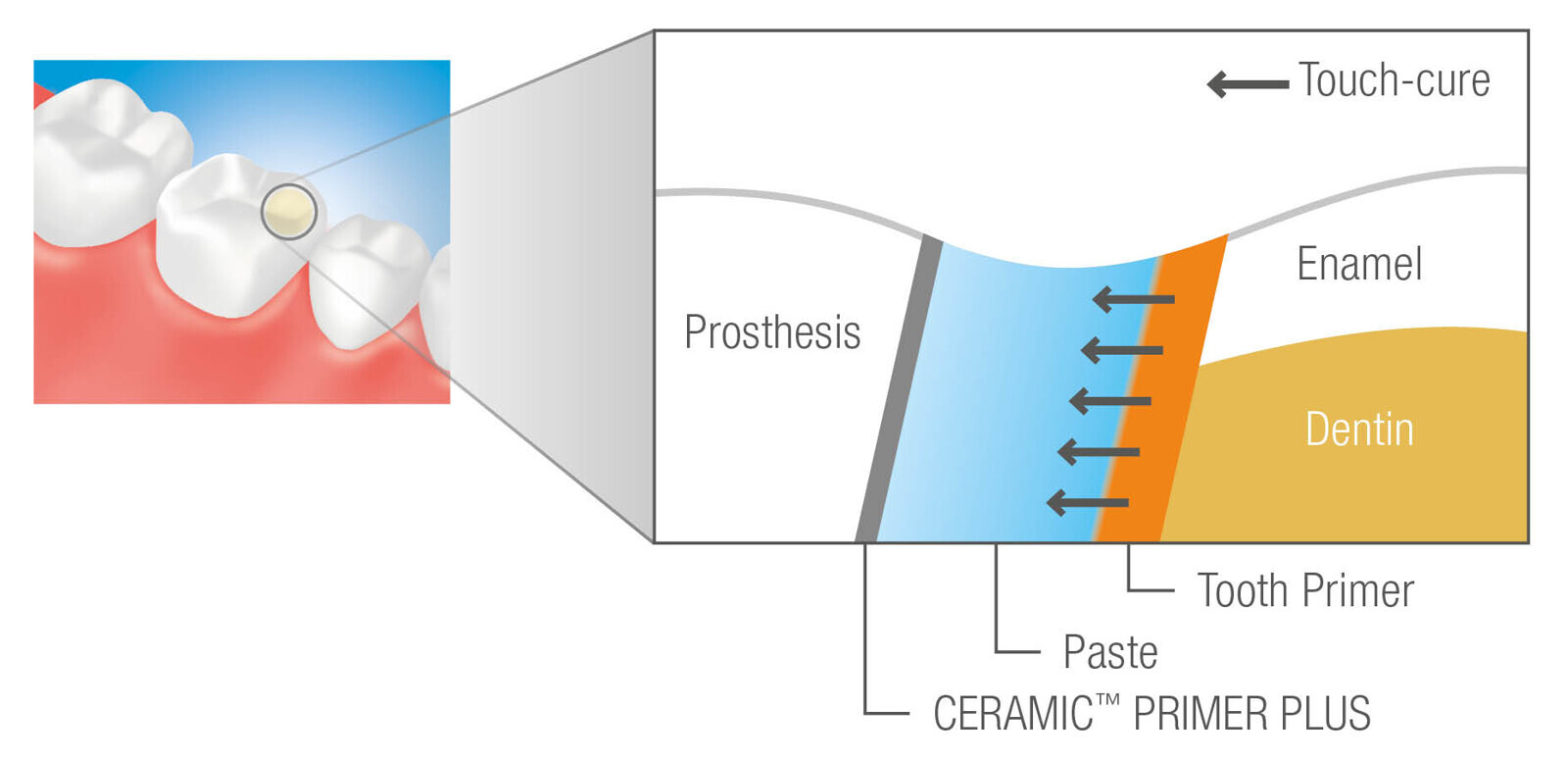 A highly active polymerisation accelerator in PANAVIA V5 Tooth Primer promotes effective polymerisation of the cement at the adhesive interface. (Image: Kuraray Norikate Dental)