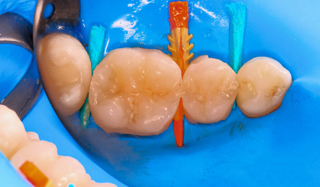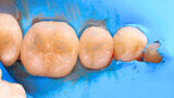 Fig. 5: Once the excess composite has been removed, polishing should start with the dark-blue TWIST DIA for Composite rubber spiral (Kuraray Noritake Dental).