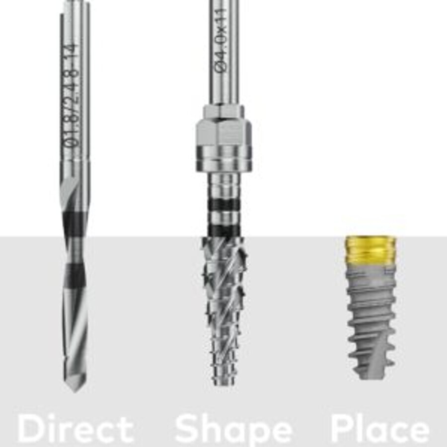 In most cases, site preparation for the N1 implant system involves only two surgical steps: creating depth and angulation with the OsseoDirector, then shaping the osteotomy with the OsseoShaper, which creates an implant site that reflects the macro-design of the N1 implant. (Image: Nobel Biocare)