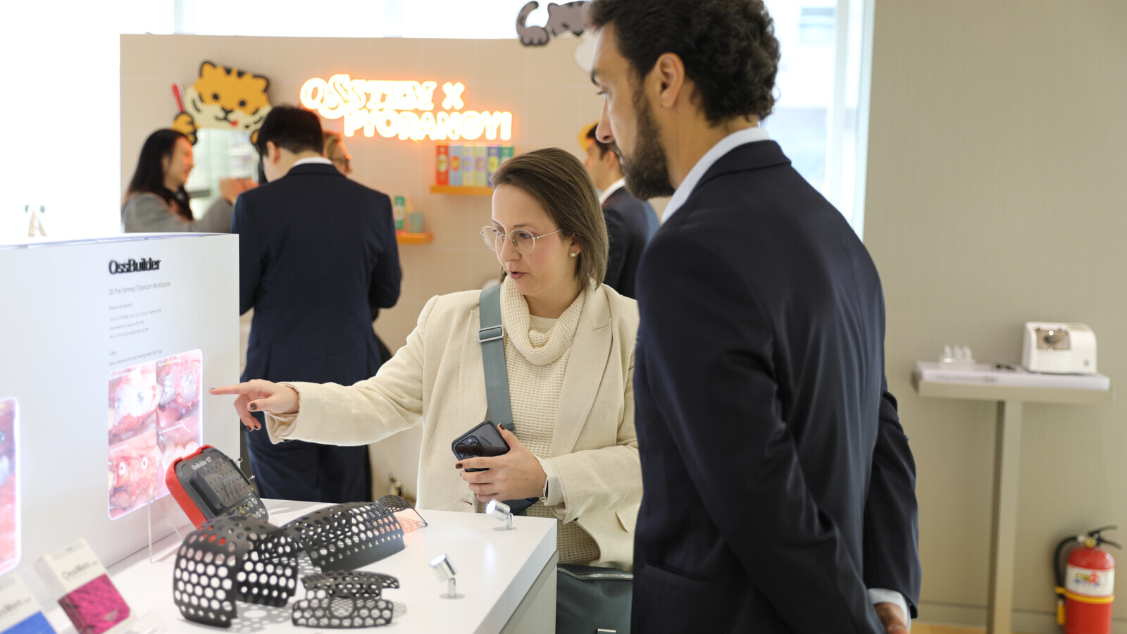 Dr Gabriela Victorelli and Julio D'Angeli of Faculdade São Leopoldo Mandic visiting the product showroom at Osstem Implant’s Central Research Institute in Seoul.