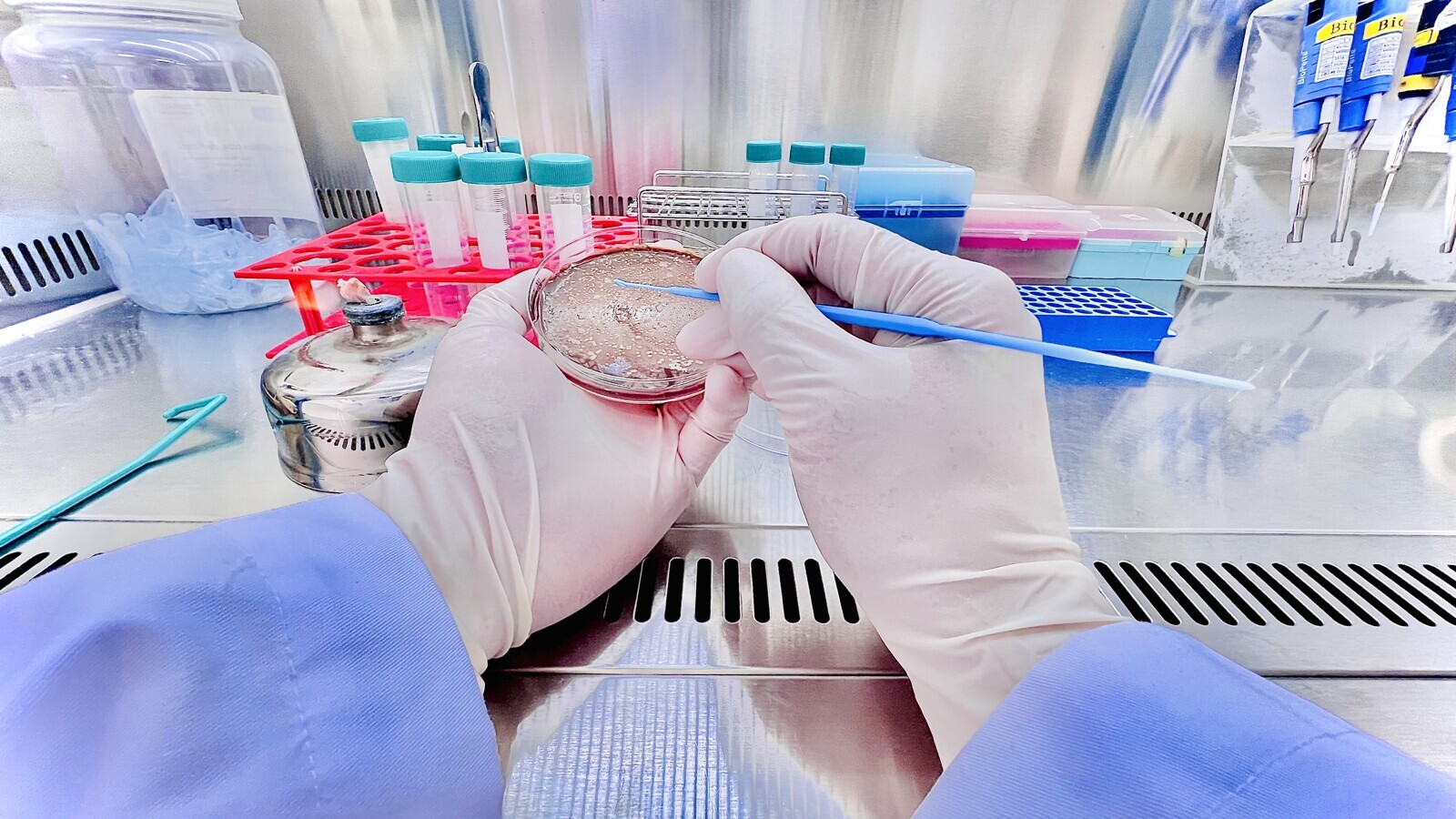 A researcher at the Biotechnology R & D Center conducts a test using human oral bacteria.