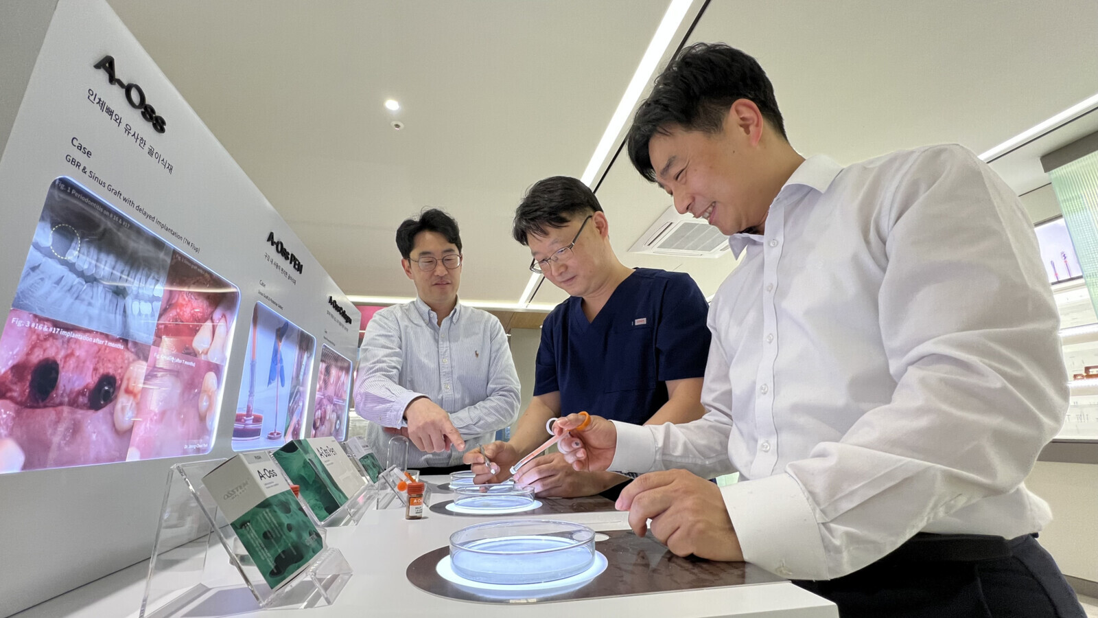 Osstem’s Bone Science Research Institute aims to position A-Oss as the top heterogenous bone grafting material in the global market this year. In the first half of 2022, the institute introduced an upgraded A-Oss in South Korea that has a 36% higher ability to form bone compared with previous products, and this improvement was achieved by controlling calcium ionic behaviour.