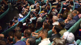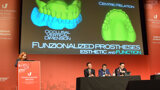 Moderator Dr Leonardo Muzzi looks on along and offers commentary to a captivated audience as Dr Hyun-Jun Jung performs a treatment of an edentulous maxilla in a guided surgery with immediate loading from another location in Rome. (Image: Dental Tribune International)