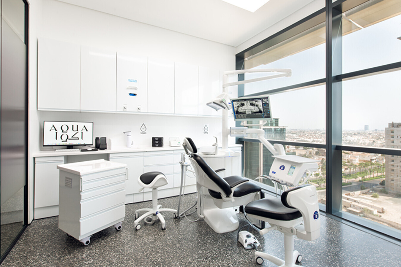 AQUA Dent Clinics stands out as an oasis of calm in the bustling urban area of Jeddah and offers a soothing escape from the busy surroundings. The azure waves of the Red Sea can be seen from the clinic’s windows. (Image: Planmeca)