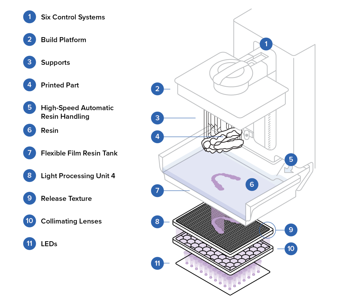 Dental LT Comfort Resin is specifically designed to meet the diverse needs of patients and dental professionals. This new formula for the production of resilient occlusal splints creates a new spectrum of material classification that lies between traditional soft splints and traditional hard acrylic splints. Splints printed with Dental LT Comfort Resin become flexible in intra-oral conditions, providing wearing comfort to the patient and thus increasing the probability of compliance with treatment, but still have the properties to provide occlusal stability (Shore hardness D: 75). Moreover, bleaching trays can be printed with this material, providing dental professionals with a comprehensive solution for various dental applications with a single resin.