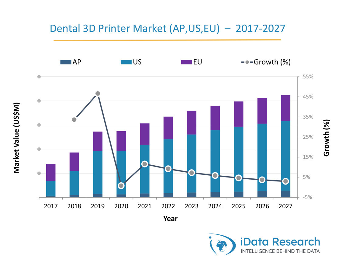 Dental 3D printing has rapidly become an important part of many digital dentistry workflows in countries such as Australia, Japan and South Korea. Dental 3D printers are now an increasingly popular tool in dental laboratories, dental practices and orthodontic practices and have many uses, including the production of crown and bridge models and final prostheses. Whereas the dental 3D printer segment is the smallest segment of the digital dentistry market, it has grown the most rapidly in recent years. Countries such as China and India, who lag behind in terms of novel technology, have not seen nearly as much advancement.