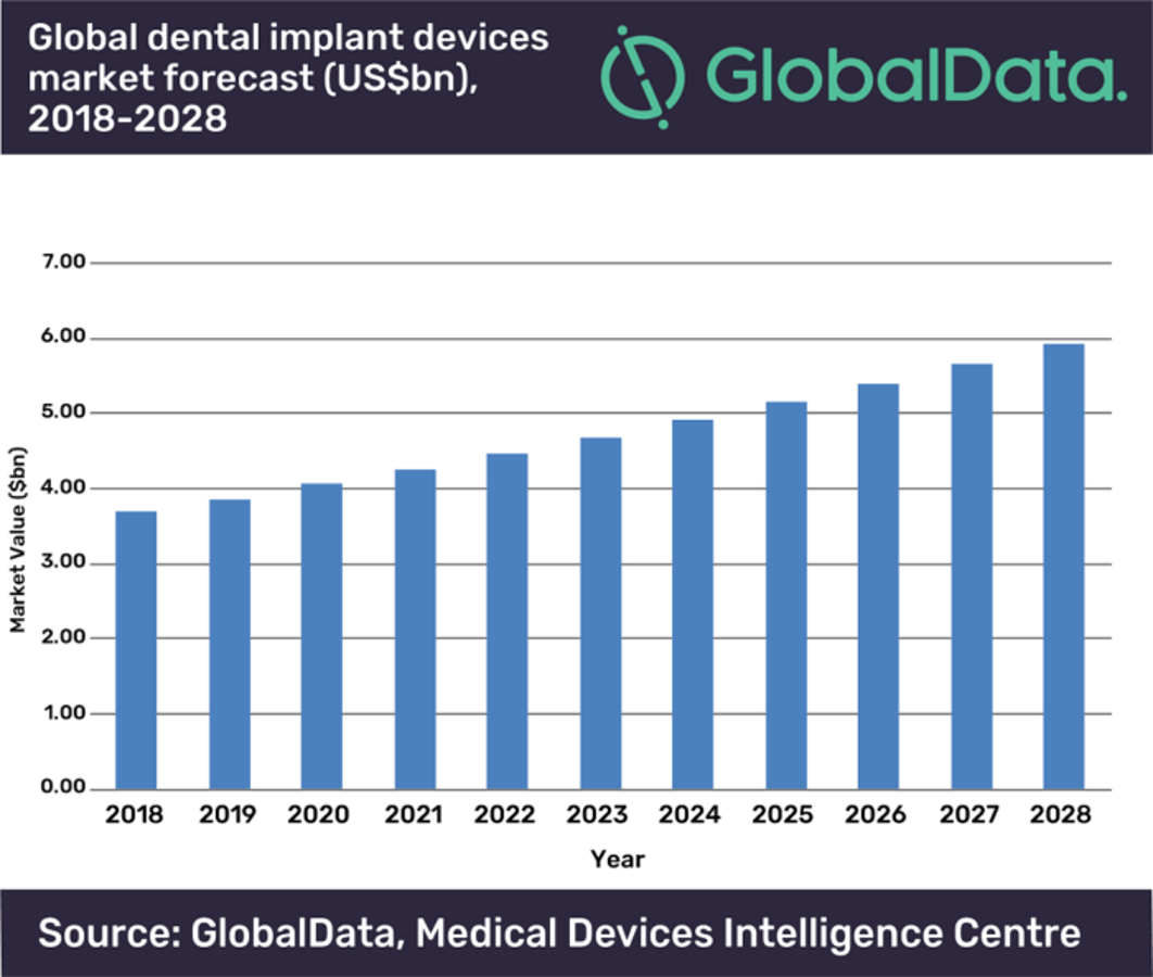 LONDON, UK: According to a new report from data and analytics company GlobalData, the global dental implant market is expected to reach US$5.9 billion by 2028, with a compound annual growth rate of 4.9 per cent expected between 2018 and 2028.