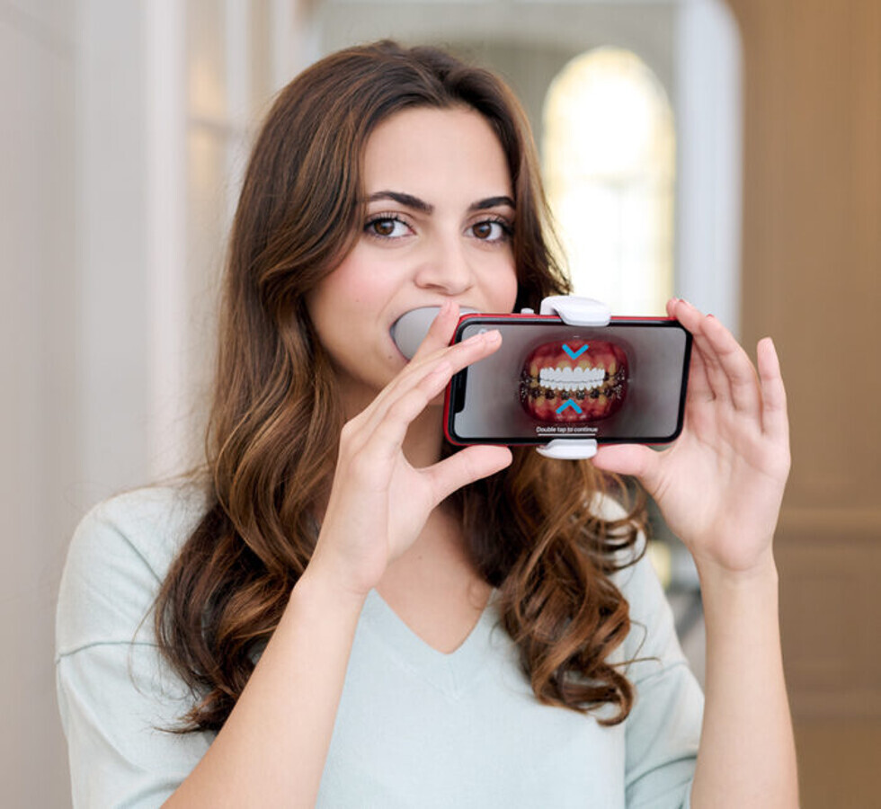 With the Scan Boxpro device and a smartphone, patients can take intra-oral images easily at home. (Image: DentalMonitoring)