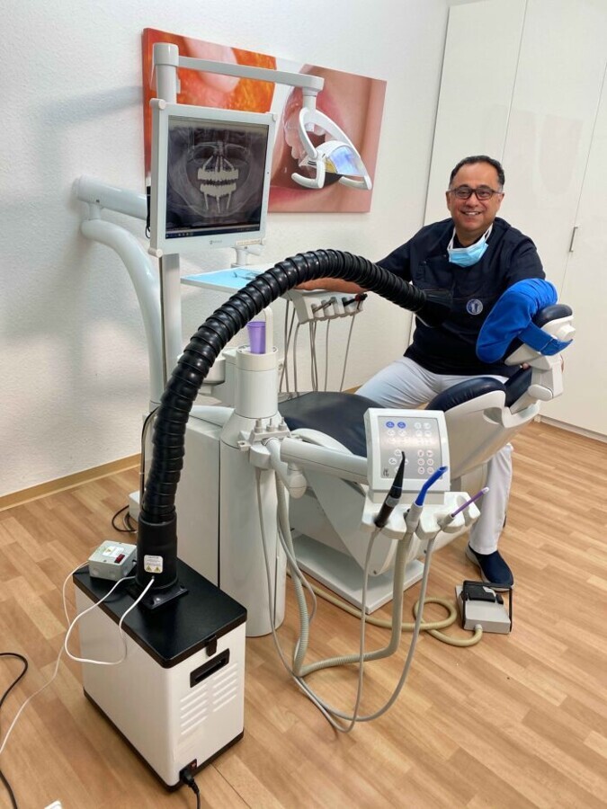 Dr Ayna, thank you for speaking with us. How did you come to develop the corona terminator? Shortly before the lockdown in Germany, there was a great need for information and a high level of insecurity among the medical and dental community with regard to aerosols and how they spread. Many dentists felt let down. From my research on aerosols, I was aware that they can stay within a radius of up to 2 m from where they are generated. However, I couldn’t find any product on the dental market that would have worked as a solution. Therefore, during the lockdown, I started to research something that I could build myself.