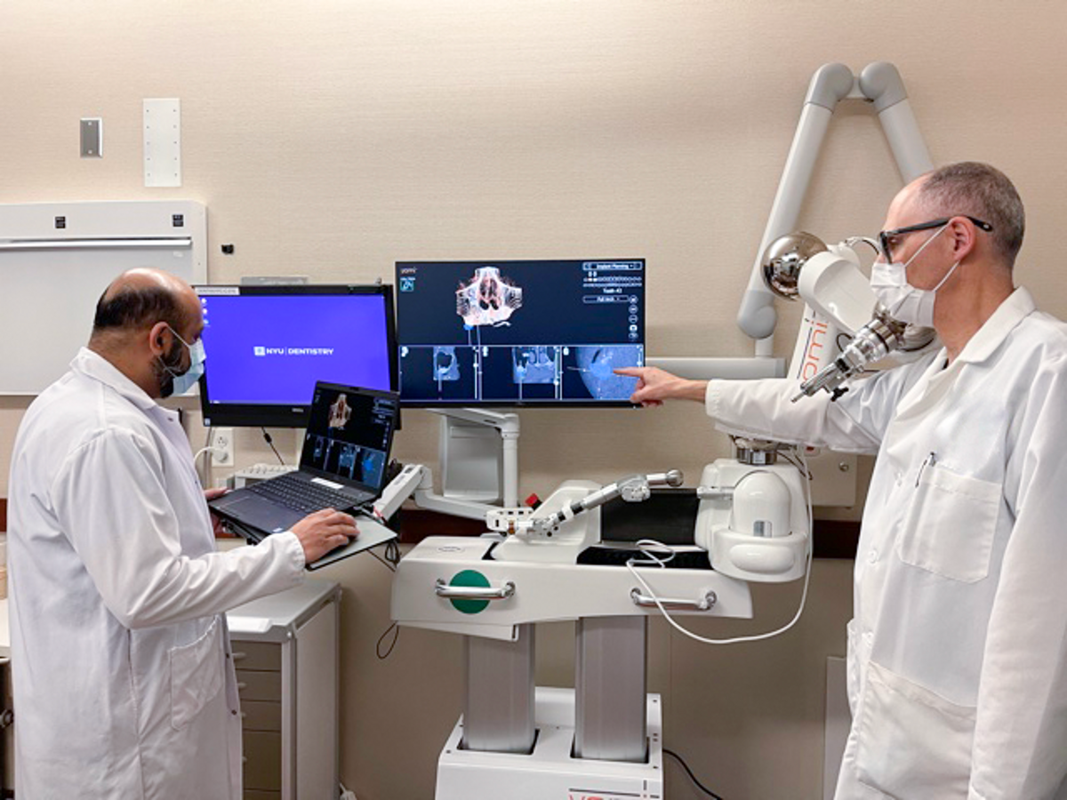 NYU Dentistry’s Dr. Huzefa Talib (left) and Prof. Robert Glickman using Yomi. (Image: NYU Dentistry)