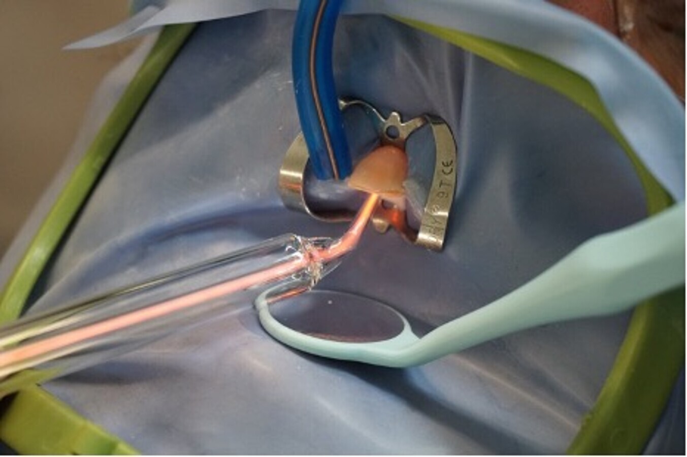 Use of dental dam isolation and ozone therapy to guarantee elimination of any bacteria. (Image: Miguel Stanley)