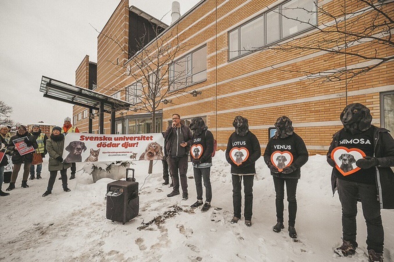 Swedish animal rights activists protesting against dental experiments on dogs conducted at the University of Gothenburg’s Laboratory of Experimental Biomedicine in 2019. (Image: Götheborgske Spionen/Djurrättsalliansen)