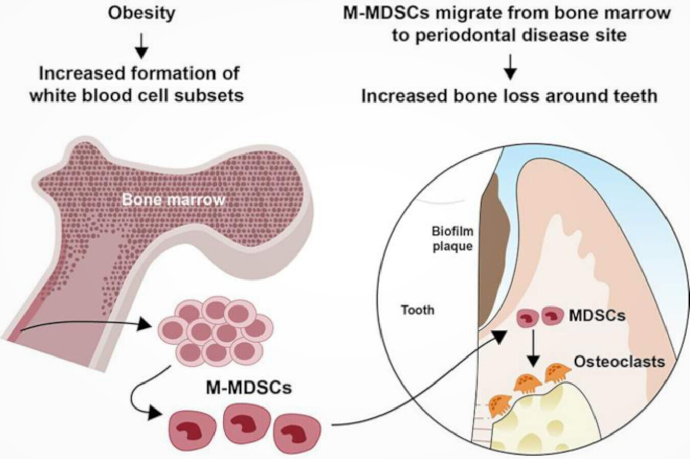 BUFFALO, N.Y., U.S.: In a new study, researchers sought to gain a deeper understanding of the link between obesity and periodontal disease. They found that being overweight causes chronic inflammation, and this may trigger the development of cells that break down the bone responsible for holding the teeth in place. The researchers believe that the findings may help improve the understanding of certain chronic inflammatory bone-related diseases that develop alongside obesity, including common comorbidities such as periodontal disease, arthritis and osteoporosis.