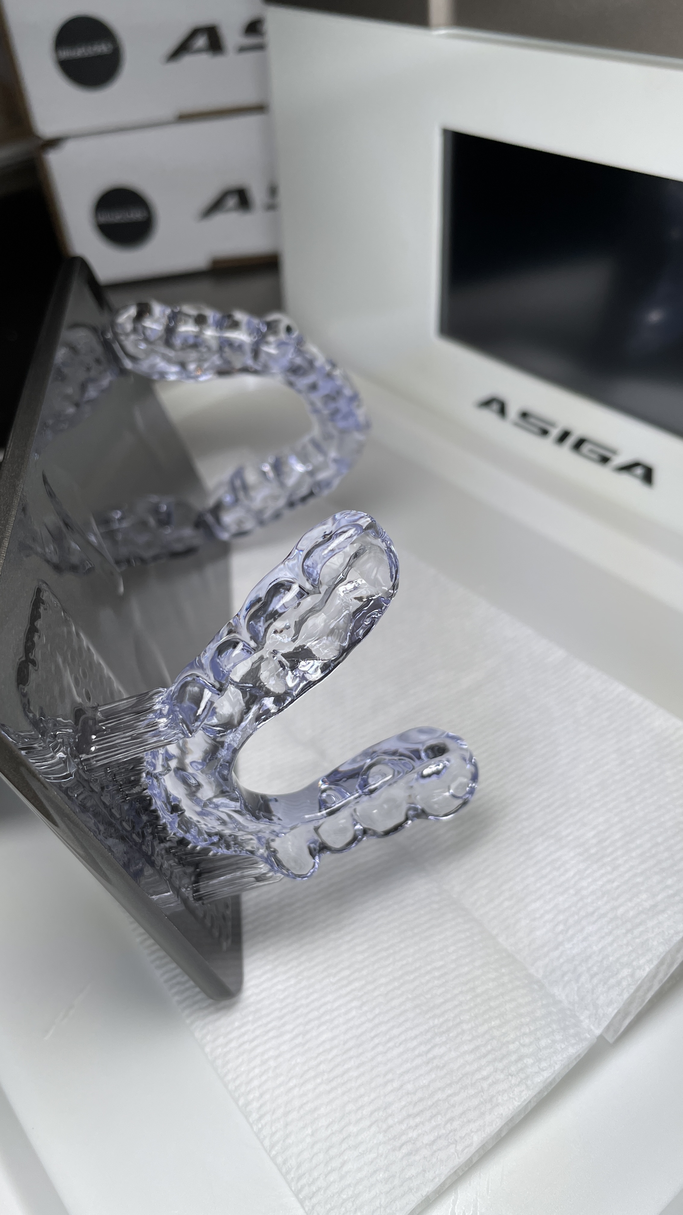 Most of our clients prefer a highly polished appliance, so we print mainly with the anterior area downwards to minimise the risk of a failed print. We see the main benefit in the massive time reduction in our polishing processes. Our team is now spending less than half the time polishing than they did before, as the splints come out much smoother and shinier.