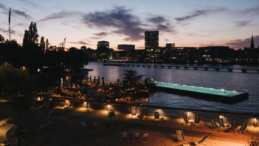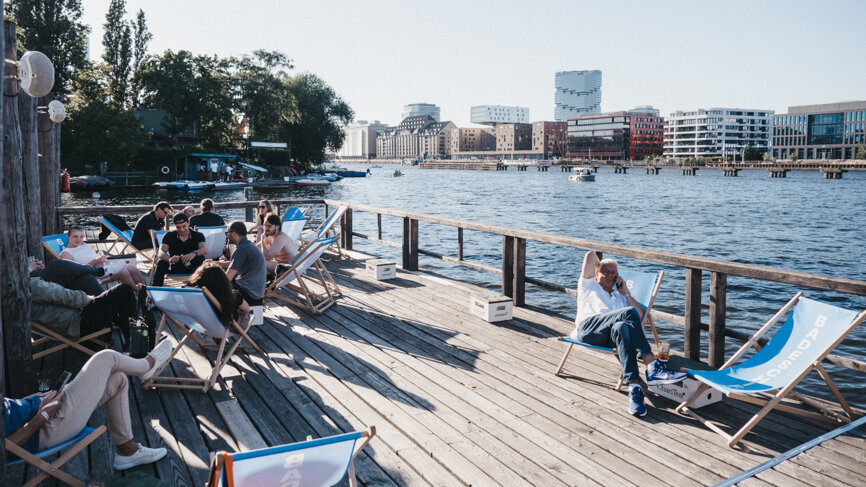 The DDS.Berlin Summer Party party is being held at the nearby Badeschiff, which includes a beach bar and swimming pool.