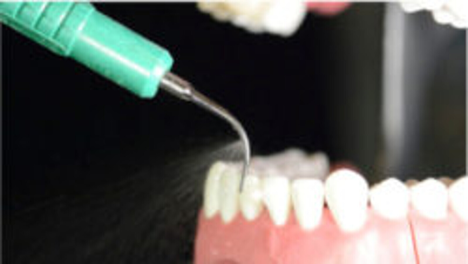 The Cavitron scaler adjacent to a dental mannequin. (Image: Plog et al., Physics of Fluids, Vol. 32, Issue 8, 10.1063/5.0021476, 2020)