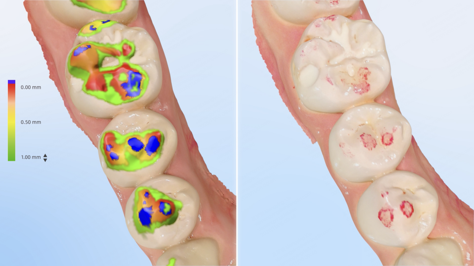 Developed to eliminate the guesswork in digital occlusal registration, IntelliBite harnesses upgraded hardware and intelligent occlusal refinement algorithms to deliver occlusal data that mirrors true intra-oral contact and digital registration accuracy without the need for manual correction. This dramatically reduces the need for chairside adjustments and post-processing corrections.