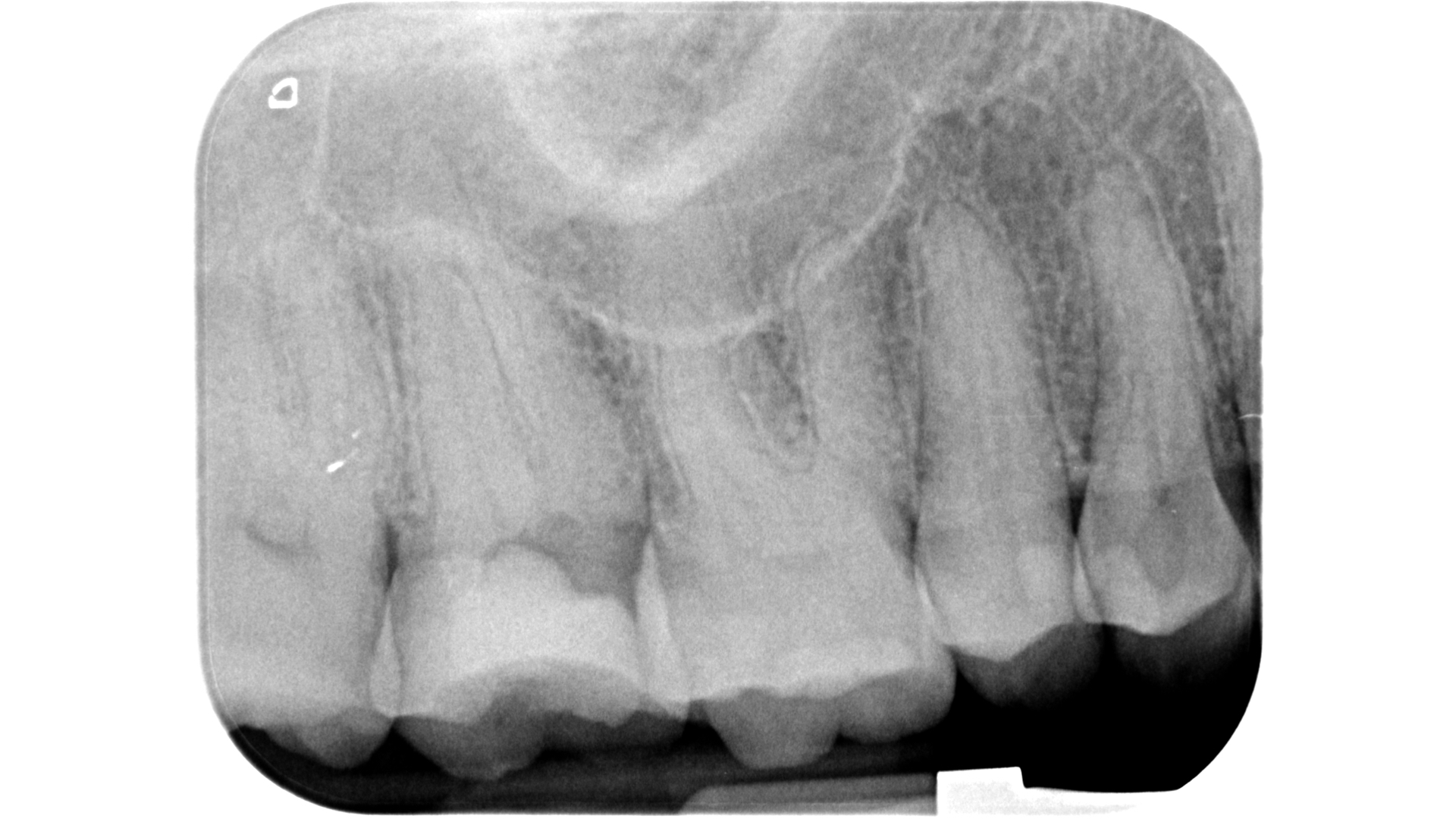 Fig. 1: Pre-op radiograph of a maxillary molar undergoing emergency treatment at another practice.