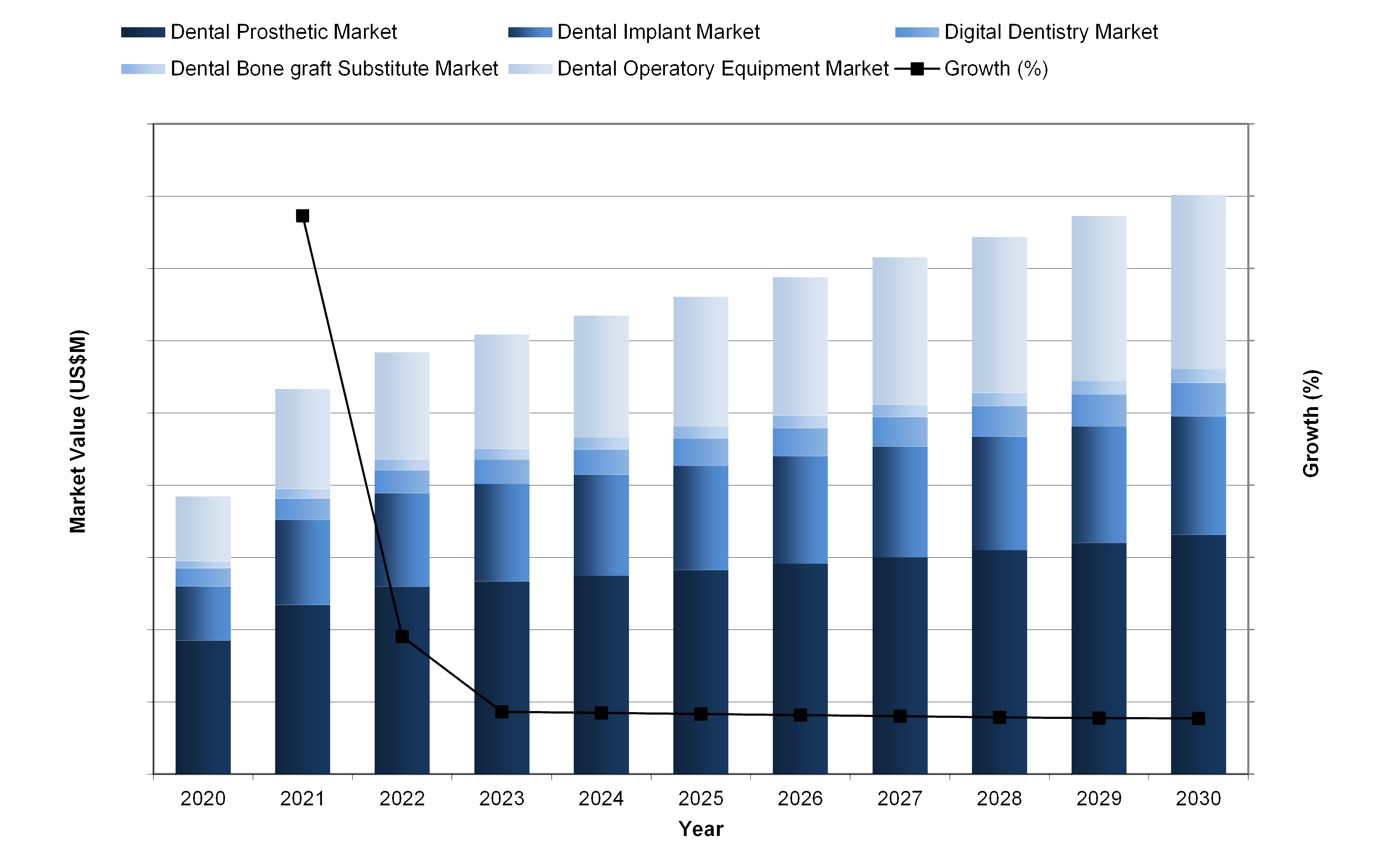 Fig. 1: Middle Eastern dental market by segment in 2020–2030. (Image: iData Research)