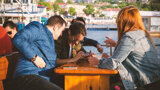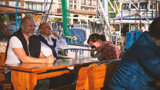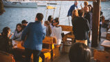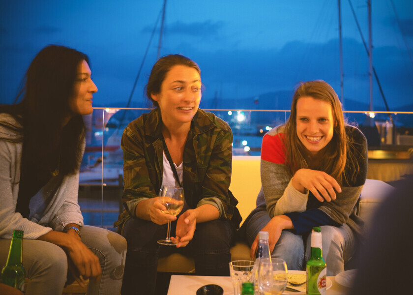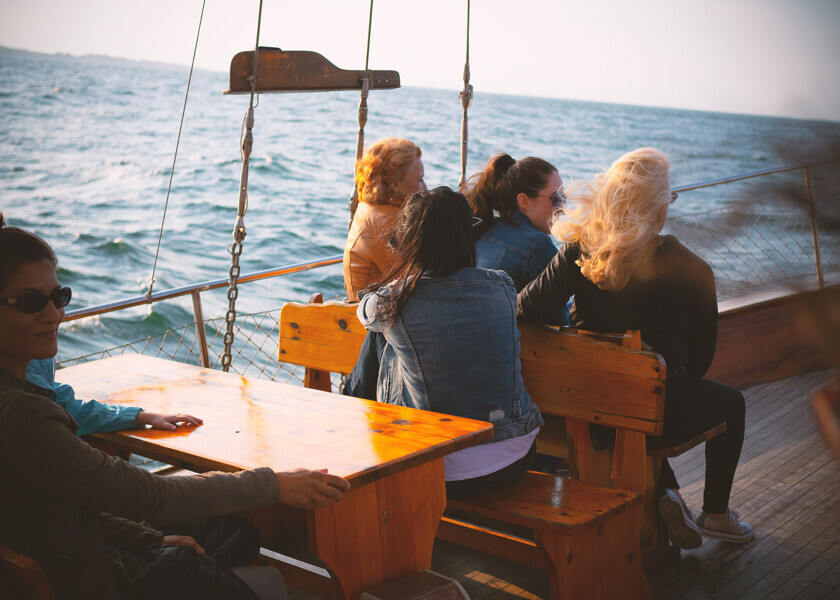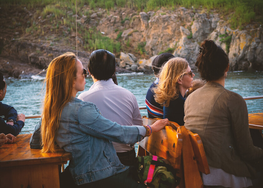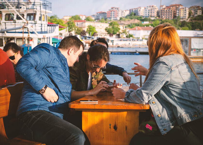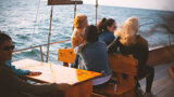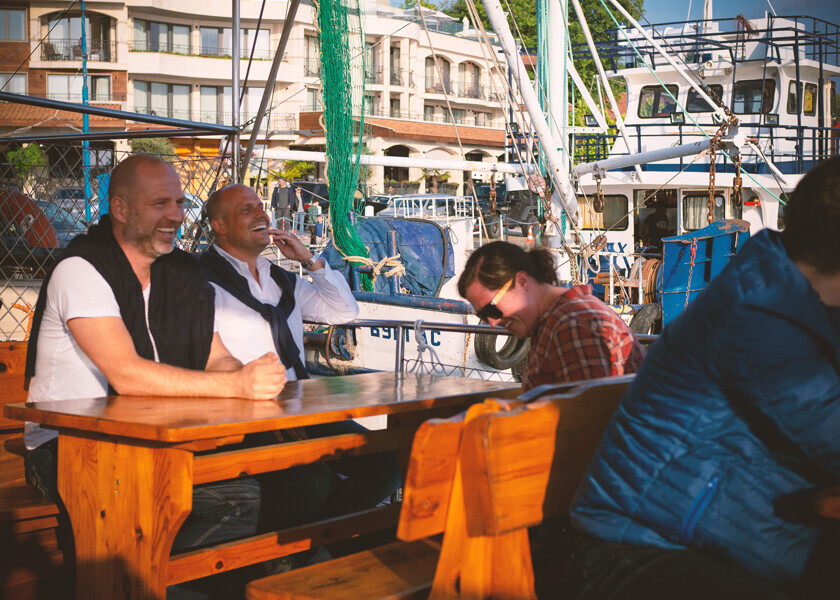 A boat trip offered the opportunity to socialise while viewing the sights of Sozopol from the sea. (Photograph: Tom Carvalho, DTI)