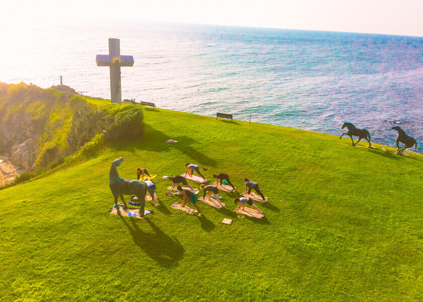 Early birds attended yoga sessions by the beach, held by certificated coach Antje Kahnt. (Photograph: Tom Carvalho, DTI)