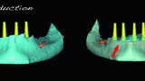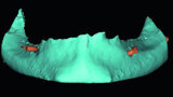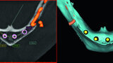 Fig. 11a: The ‘clipping’ view with simulated implants reveals ‘hollow’ areas in the symphysis.