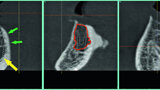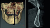 Fig. 3: Cross-sectional slice revealing the trajectory of the maxillary alveolus vs the trajectory of the root when planning for an implant.