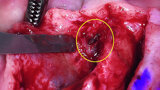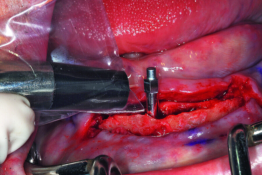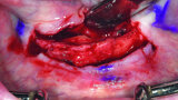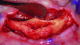 Fig. 18a: A resorbable calcium apatite bone grafting material was used to fill voids and cover the implant—followed by applications of platelet-rich fibrin (PRF).