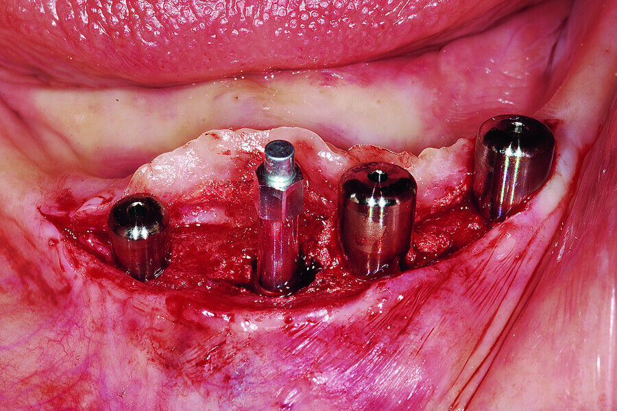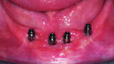 Fig. 20: Four overdenture attachments to support a complete mandibular denture.