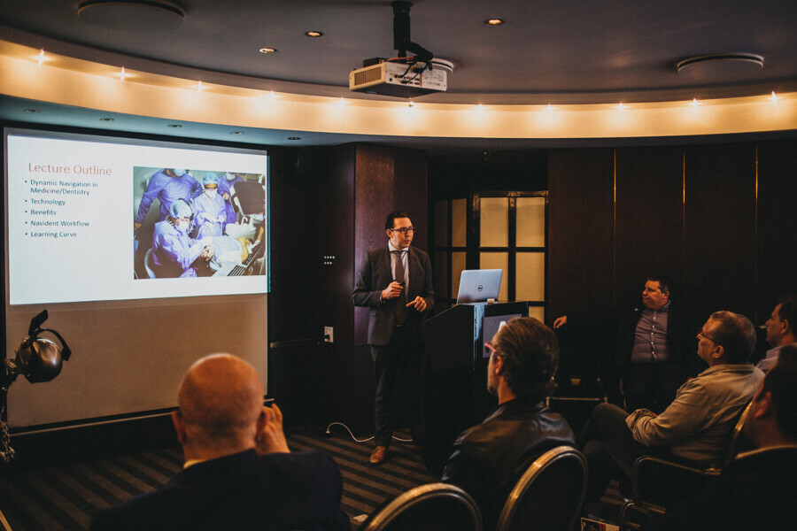 Rob Pounds from The Dental Imaging Company, a partner in the UK, and Britt van den Berg, who is a clinician associated with ACTA university Amsterdam and is now starting research with Navident. (Photograph: Robert Strehler)
