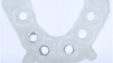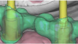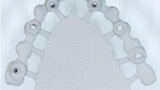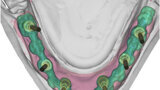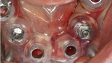 Fig. 6c: Occlusal view showing CAD of the provisional FDP framework (a) and close-up views from the interface between the CAD framework and the prefabricated titanium abutments (b & c).