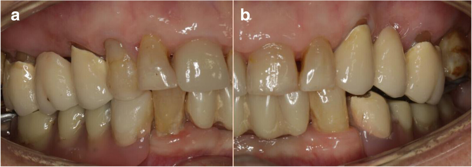 Figs. 2a & b: Initial dental status: right side (a) and left side (b).