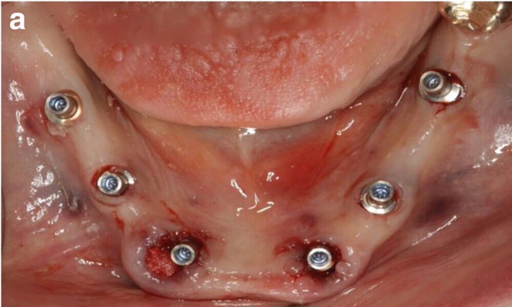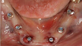 Fig. 9a: Occlusal views of the abutments (a) and of the immediate provisional restoration that were passively bonded in situ (b).