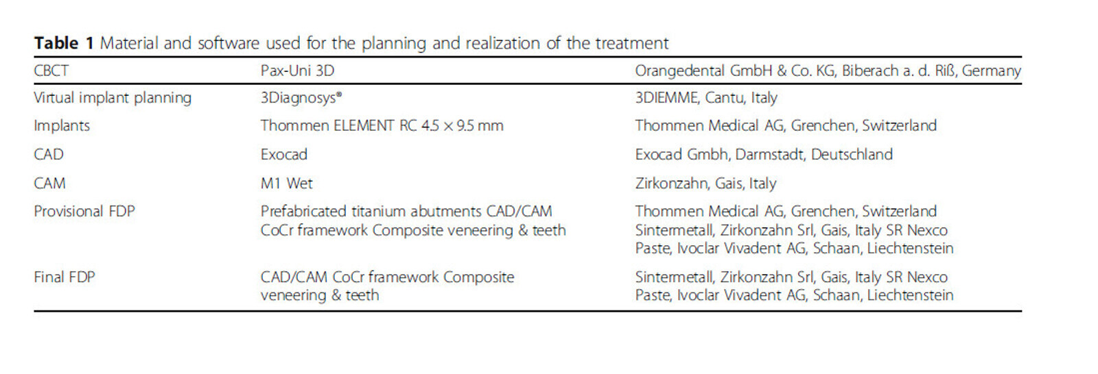 Fig. 7a: CAD/CAM model with the prefabricated titanium abutments (a), CAD/CAM cobalt–chromium framework (b) and composite veneered provisional FDP (c & d) before bonding to the abutments.