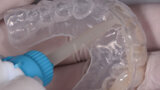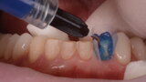 Fig. 11: The crowns (#11–13 and 21–23) and veneers (#14–17, 24–27, 31–37 and 41–47) were secured to the abutments using a light-cured resin adhesive (Futurabond U and Bifix QM).
