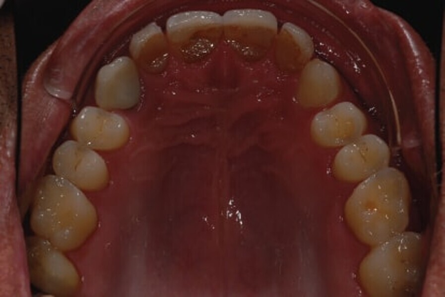 Fig. 2: Intraoral photograph prior to treatment, occlusal view of maxilla.