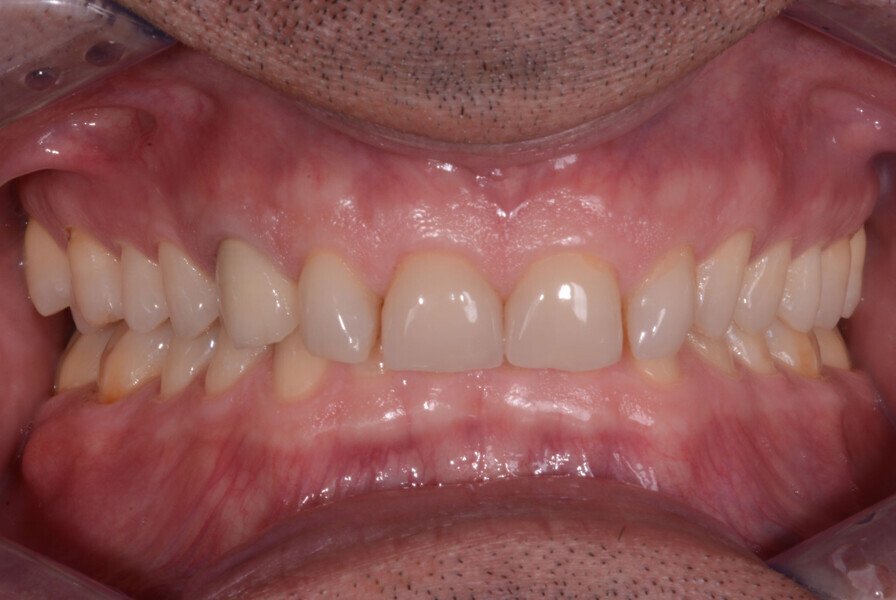 Fig. 8: No preparation of the posterior teeth and minimal preparation of the mandibular anterior teeth. Teeth #11–13 and 21–23 had already been prepared.