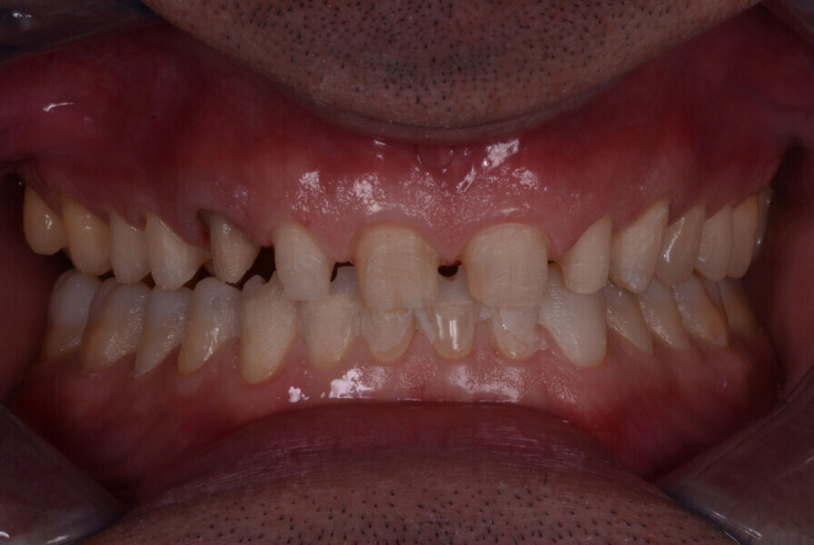 Fig. 1: Intraoral photograph prior to treatment, frontal view.