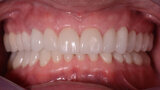 Fig. 12: The crowns (#11–13 and 21–23) and veneers (#14–17, 24–27, 31–37 and 41–47) were secured to the abutments using a light-cured resin adhesive (Futurabond U and Bifix QM).