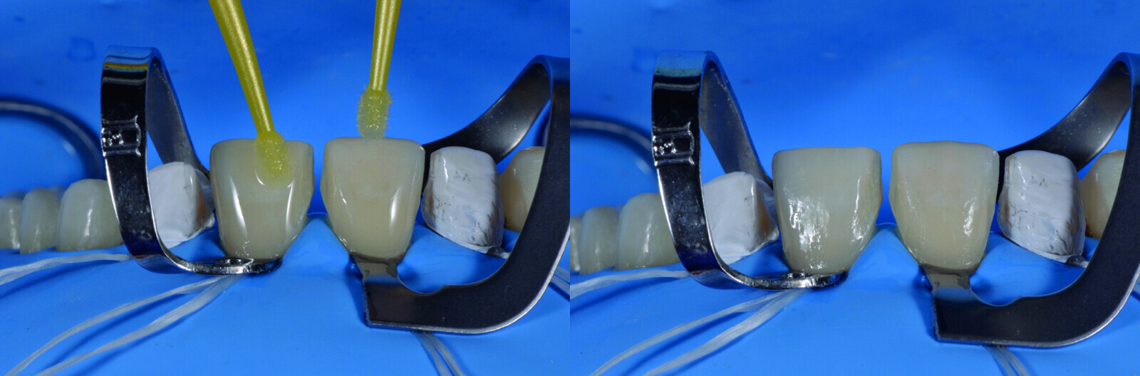 Fig. 16b: Etching of the enamel for 30 seconds with a 32 % orthophosphoric acid.