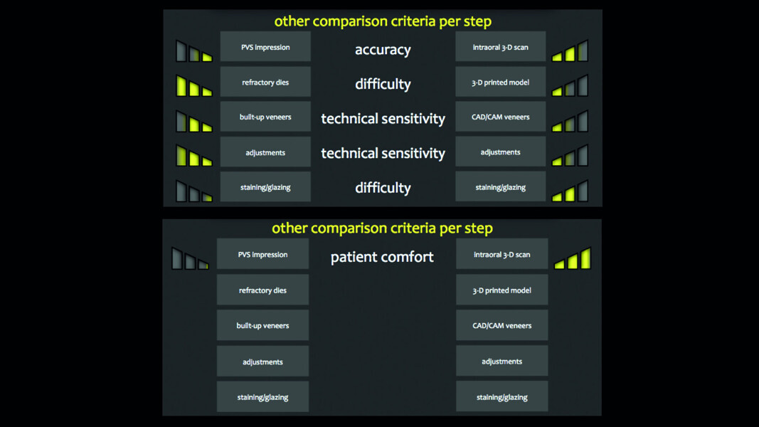 Fig. 18a: Subjective comparison criteria per step between analogue and digital workflows. PVS=polyvinylsiloxane.