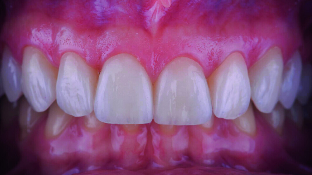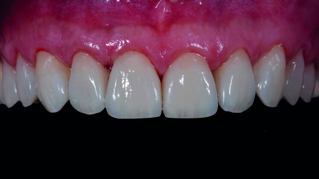 Fig. 7: Periodontal tissue of the anterior teeth six months after crown lengthening.